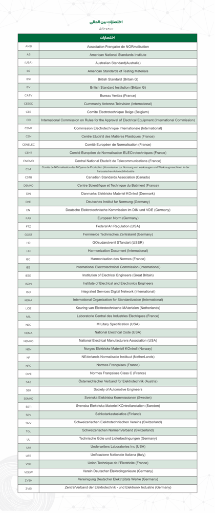 جدول مقایسه کابلهای همگن (CENELEC) با DIN VDE ,IEC ,HD