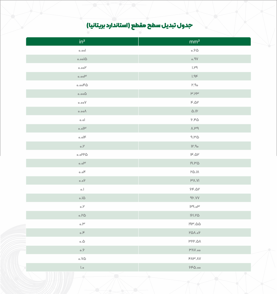 جدول تبدیل سطح مقطع (استاندارد بریتانیا)