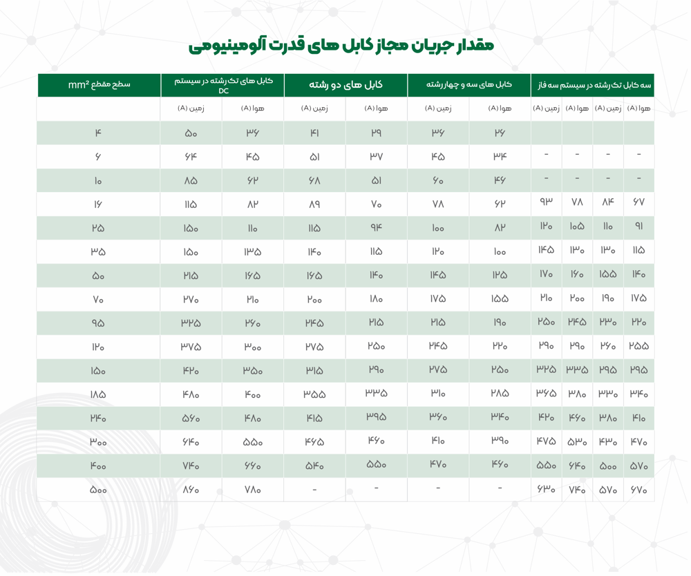 مقدار جریان مجاز کابلهای قدرت با هادی آلومینیوم